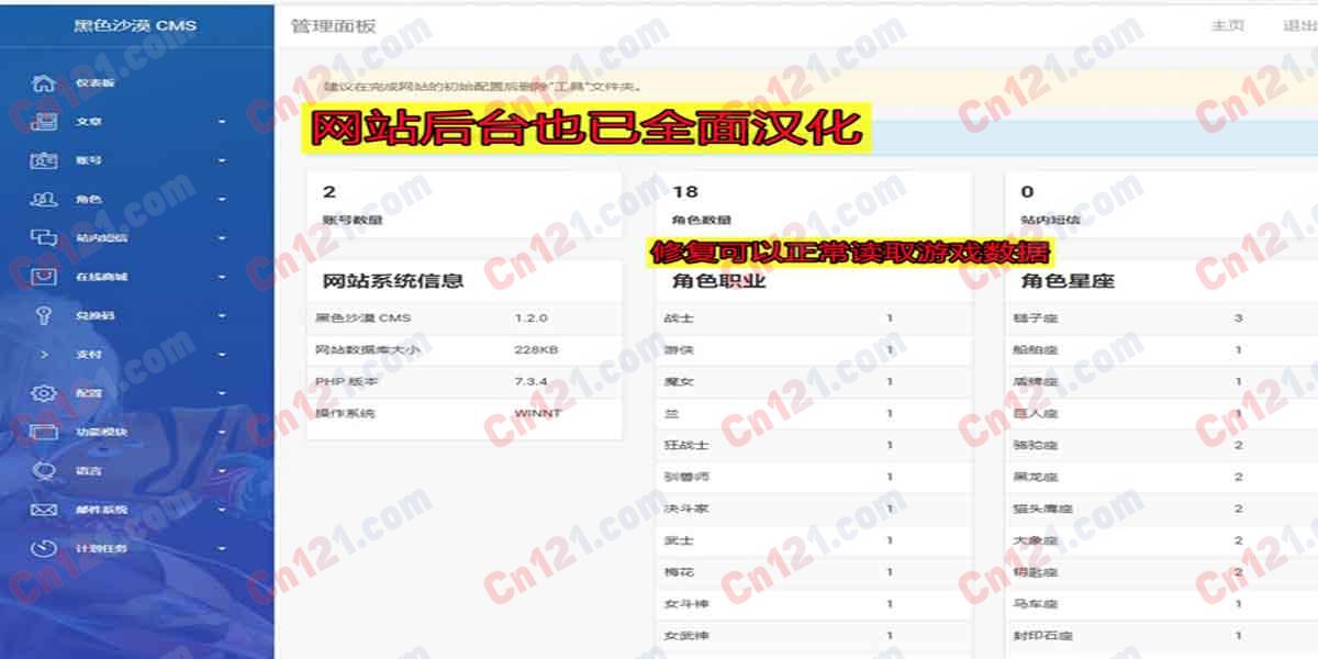 1.本店独家优化配置中文网站系统,